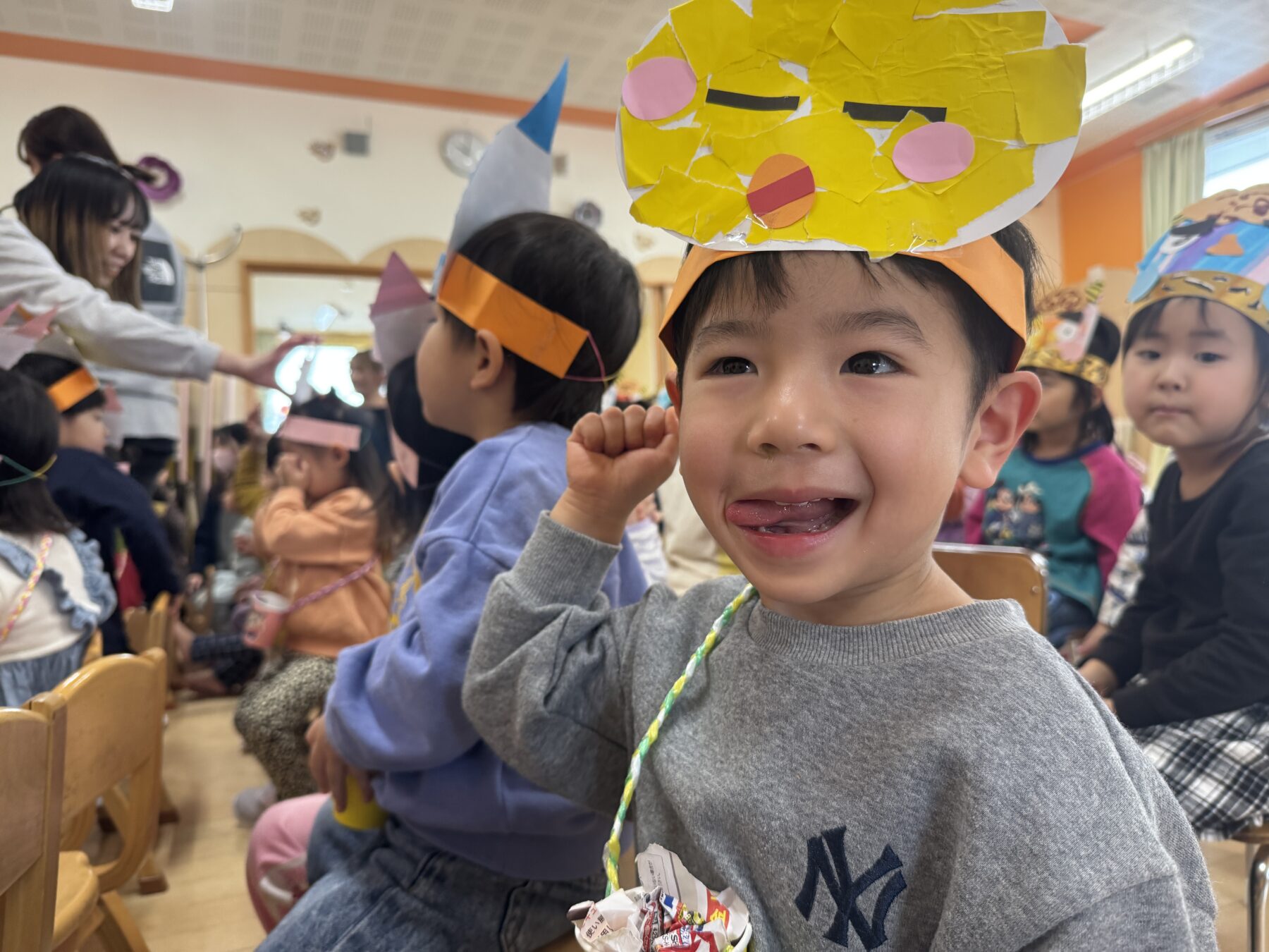 お面をつけて鬼を退治しました😤✊🏻