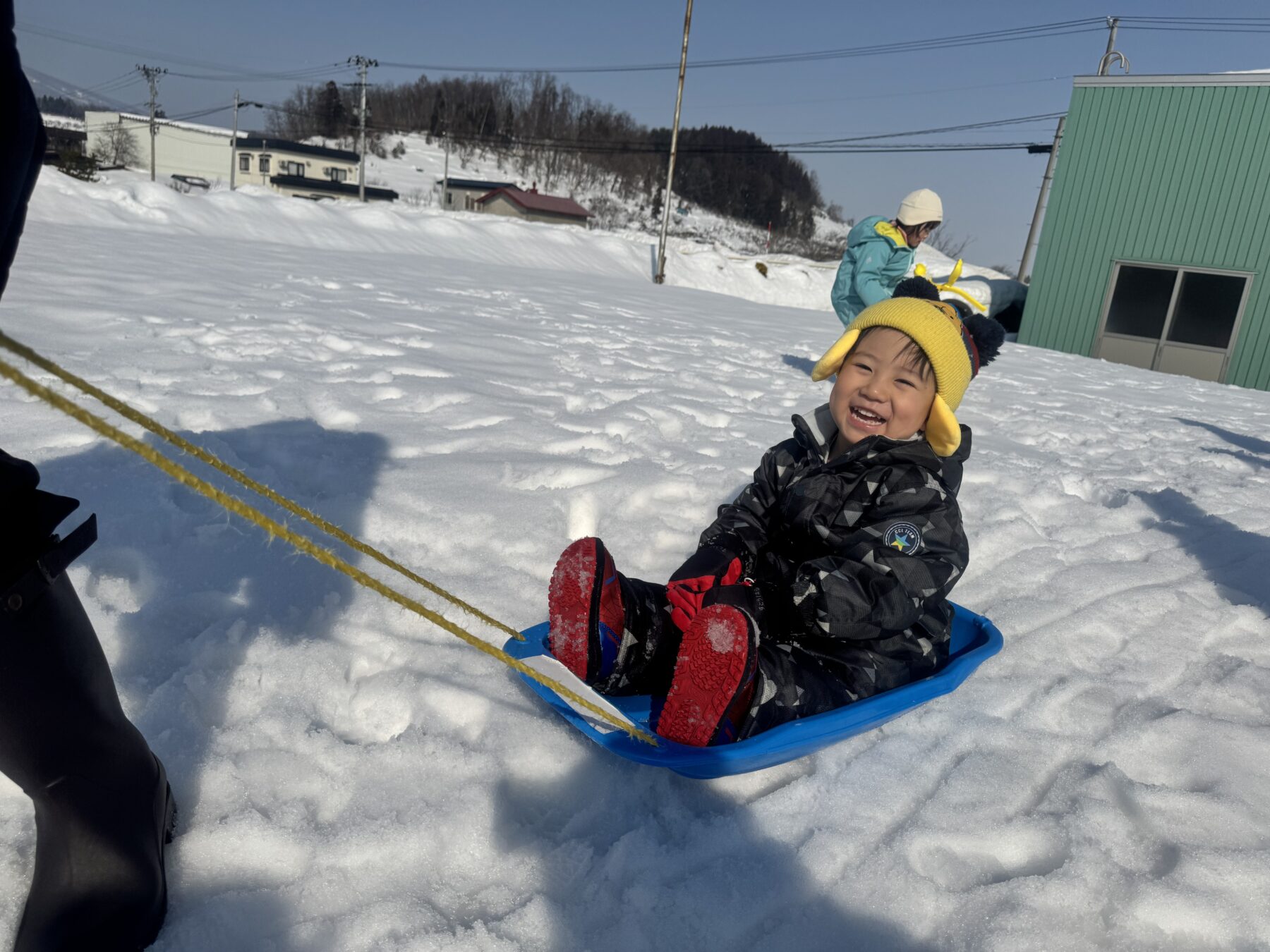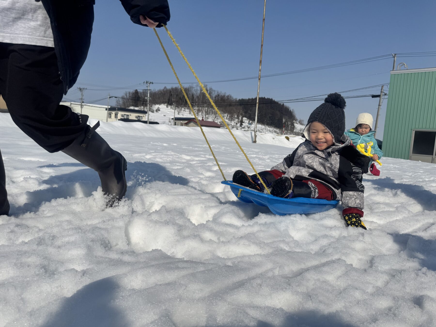 ソリに乗って先生にひっぱってもらったり