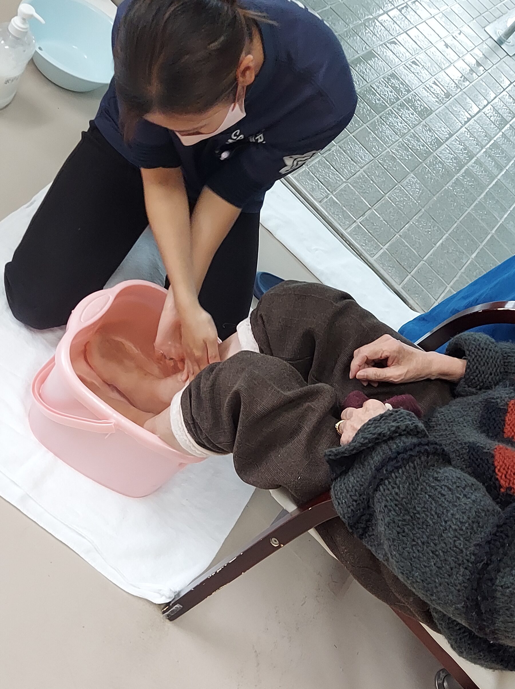 寒くなると、肌や体全体が乾燥したり、冷えや運動不足から浮腫みやすくなってくるという事で、午後の時間を活用して、足湯や血流マッサージを始めました!