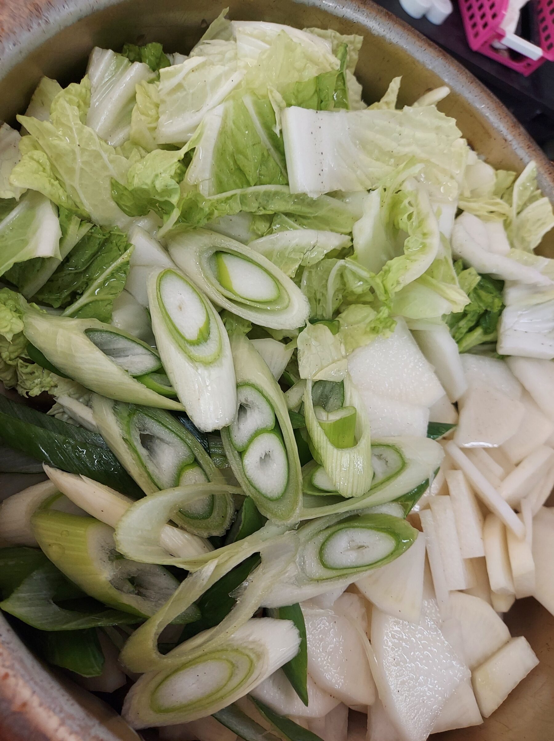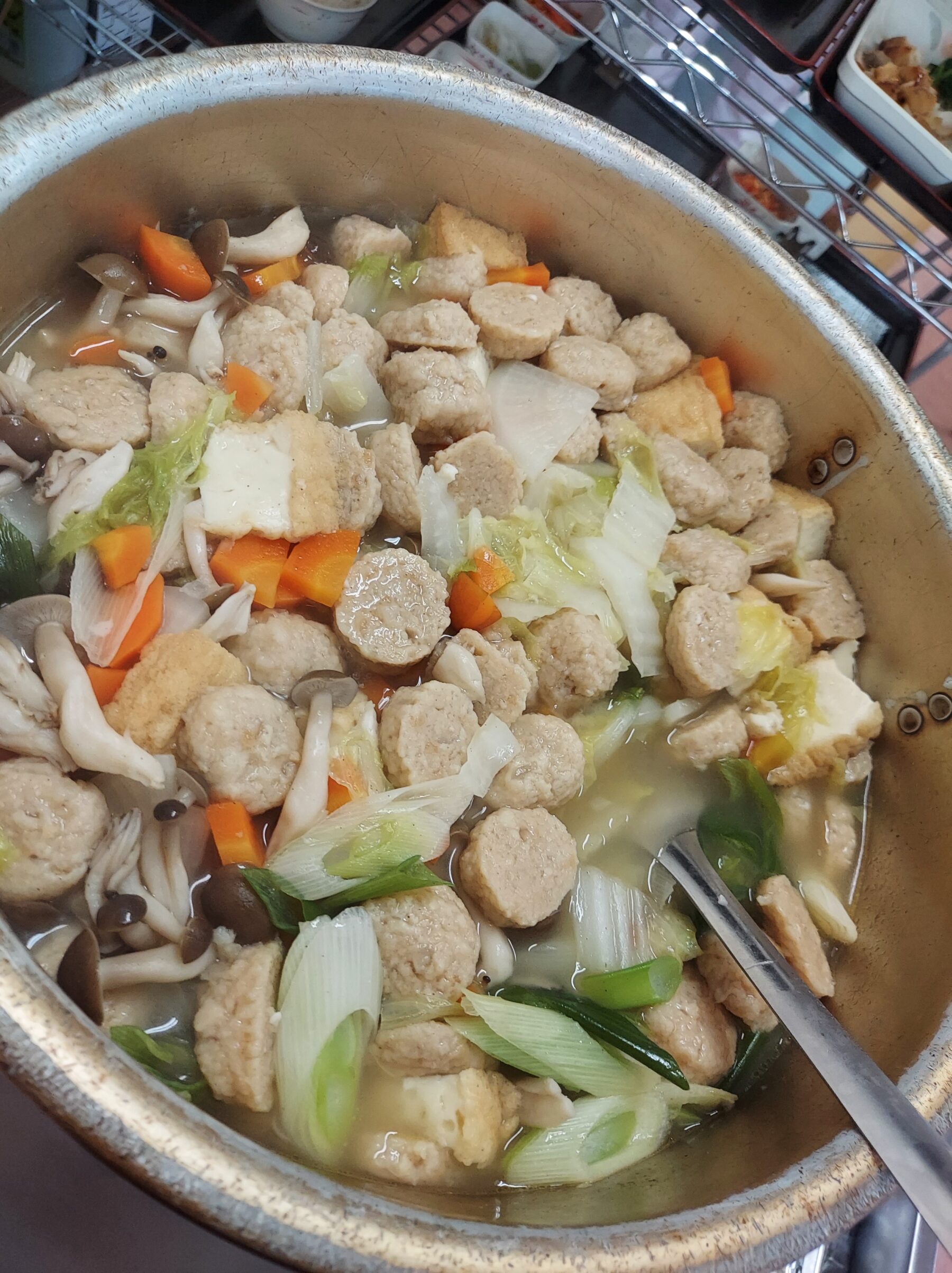 お客様にも、野菜のカットや皮むきにご協力頂き、こんなに美味しそうな具沢山の鍋が完成しました!✨