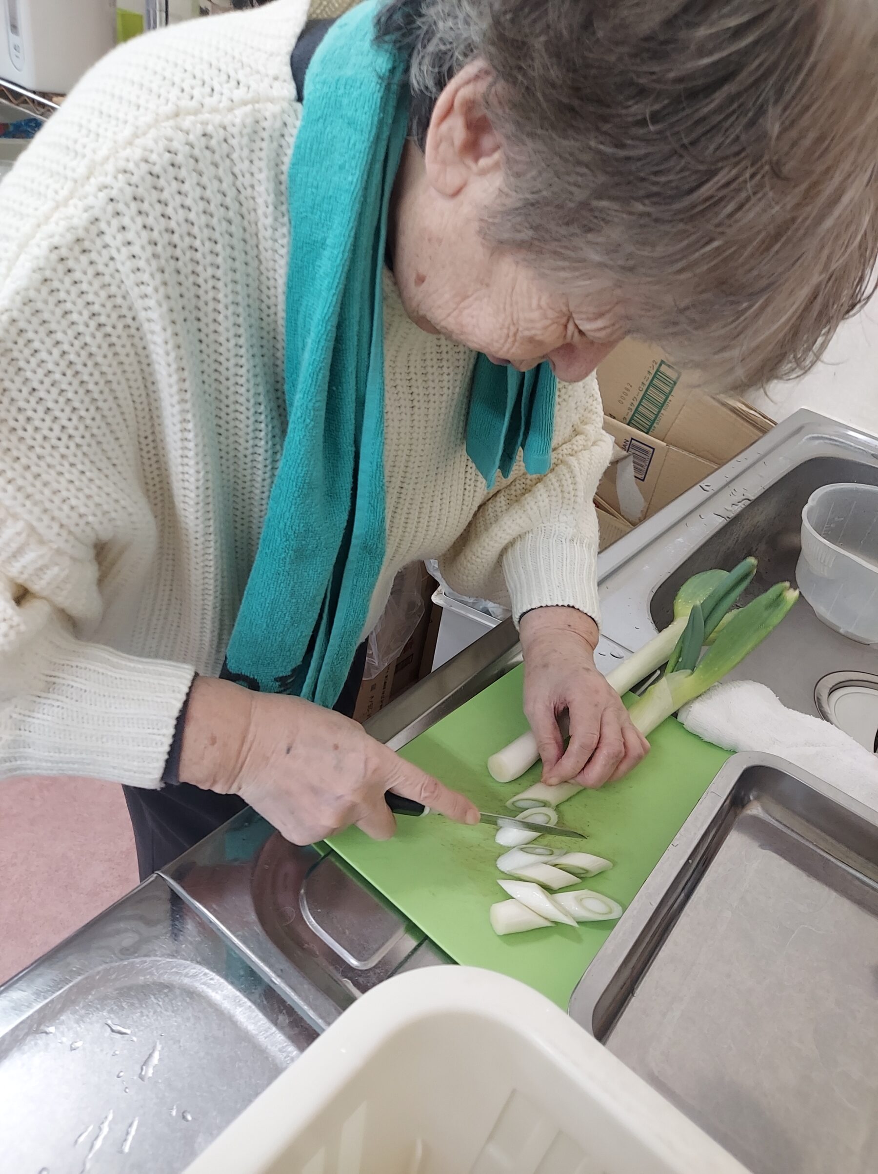 そして、温かい食べ物でも体を温めました!野菜たっぷりの鍋作りを行いました。