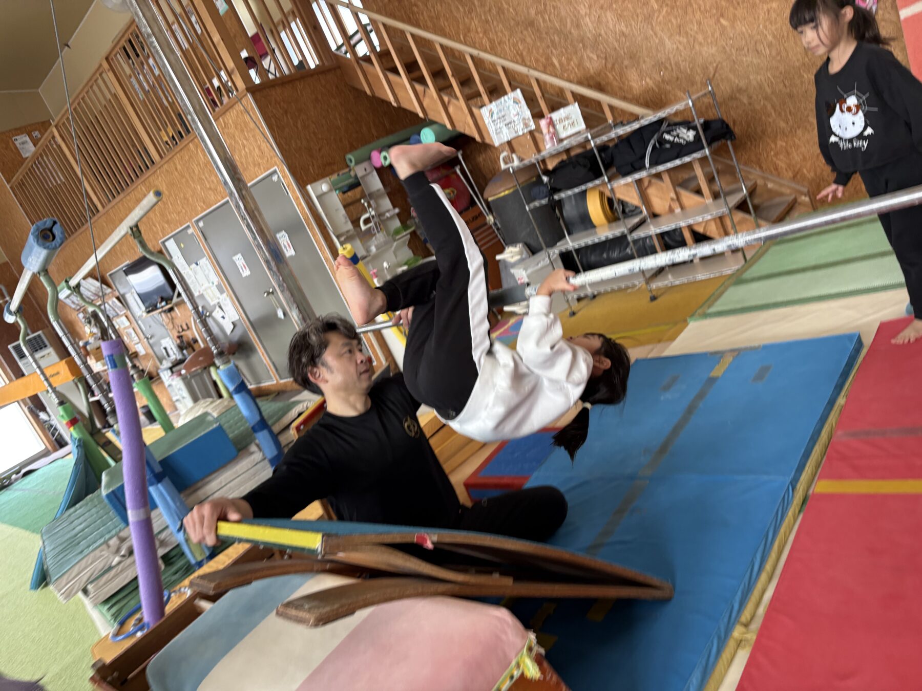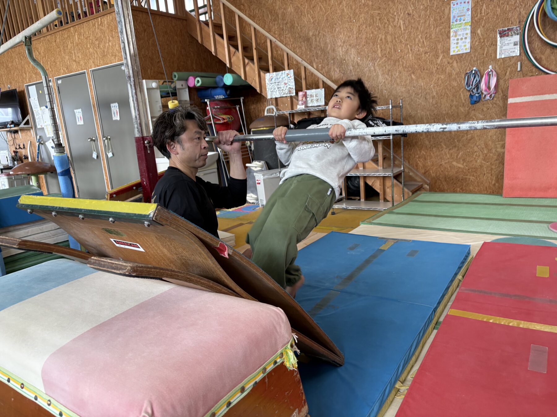補助の板を使い、鉄棒の逆上がりに挑戦しました!!