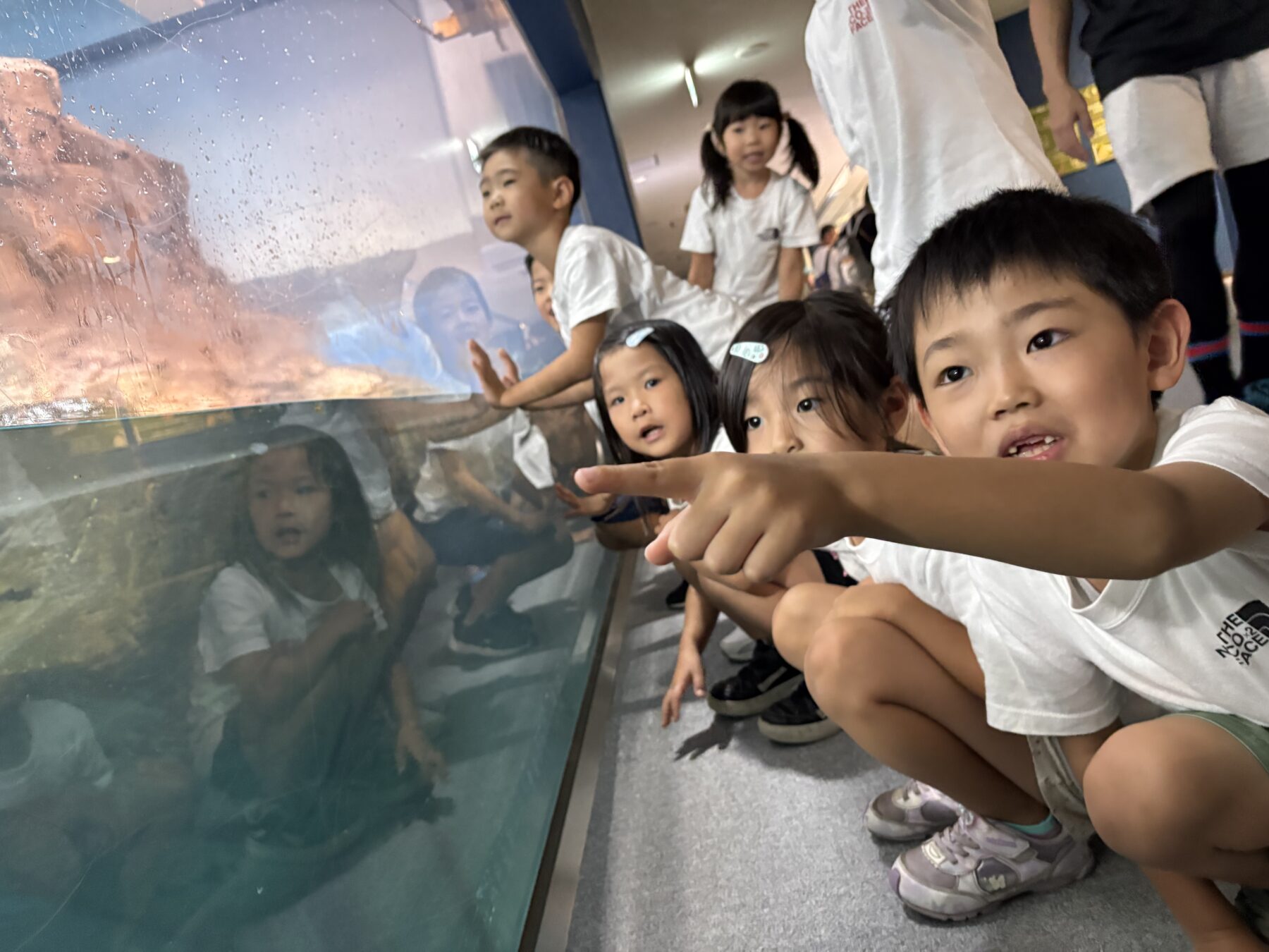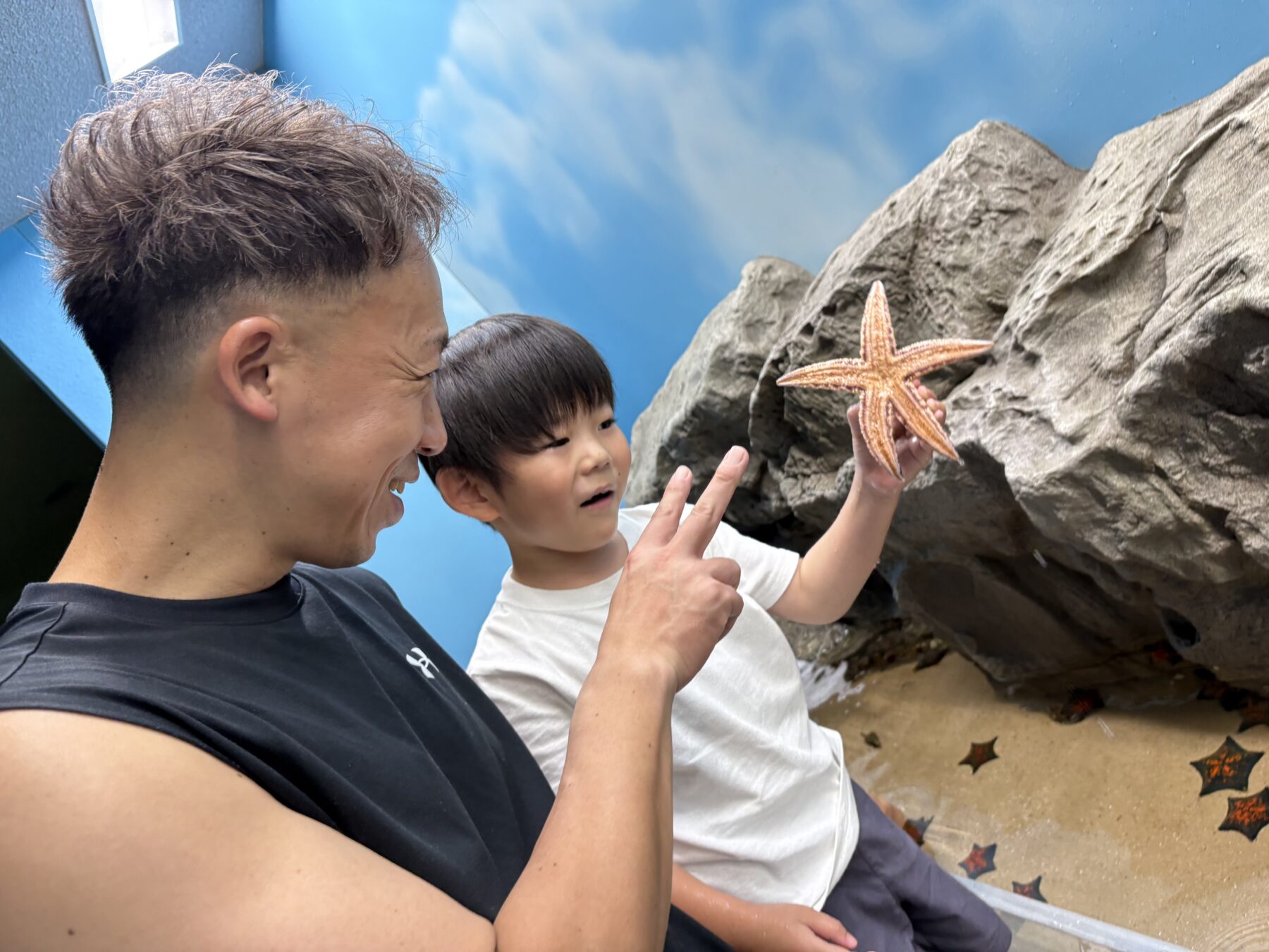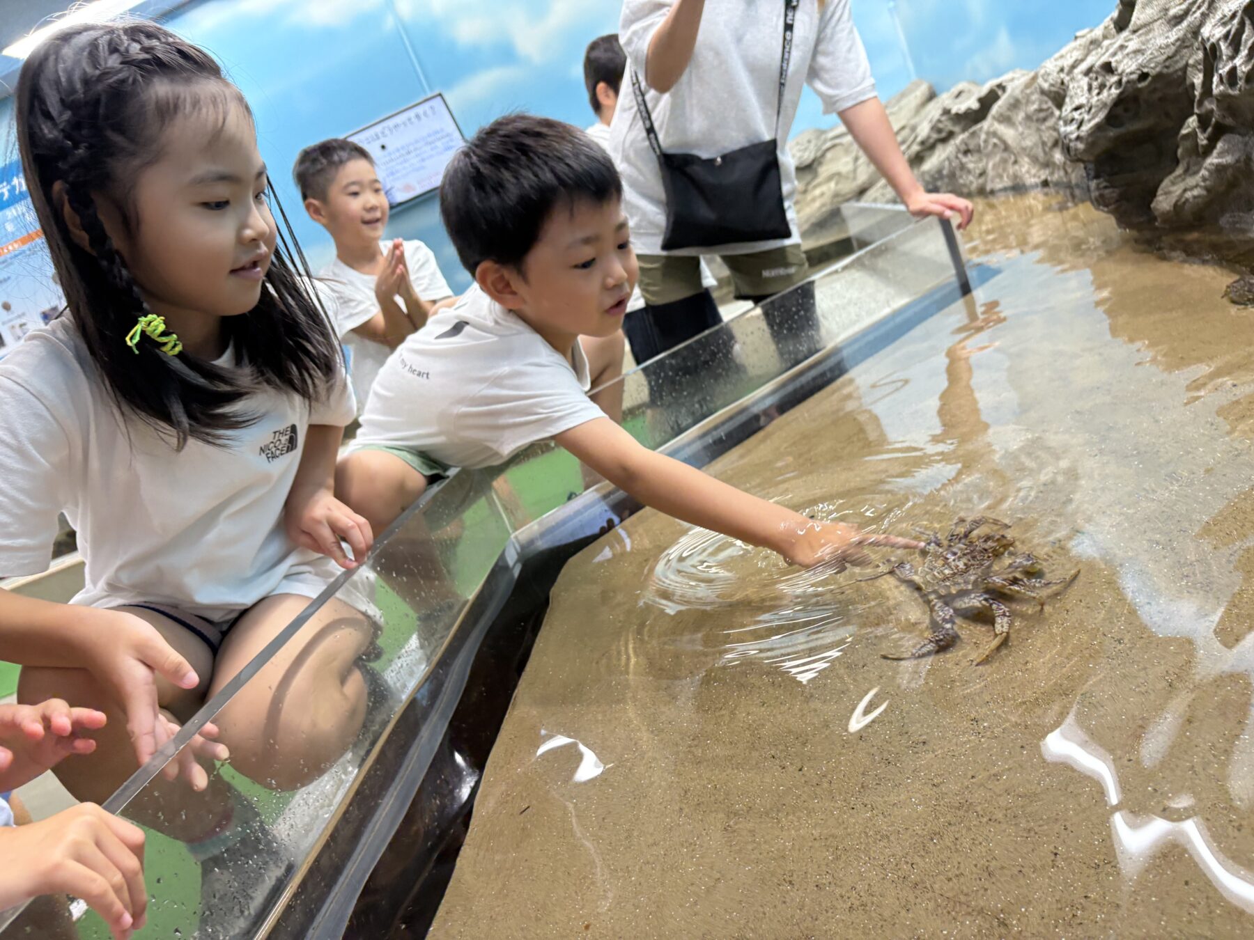 タッチコーナーでは、ヒトデやカニ、貝も触ってうれしそうでした♡
