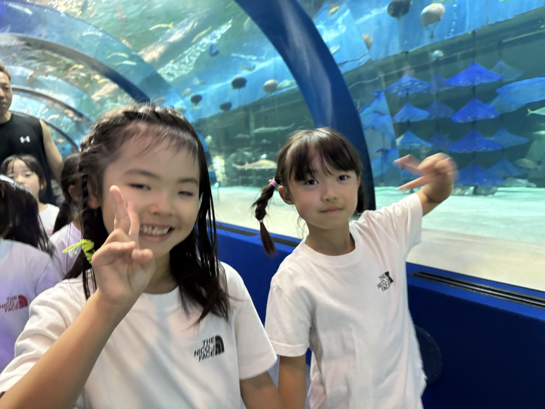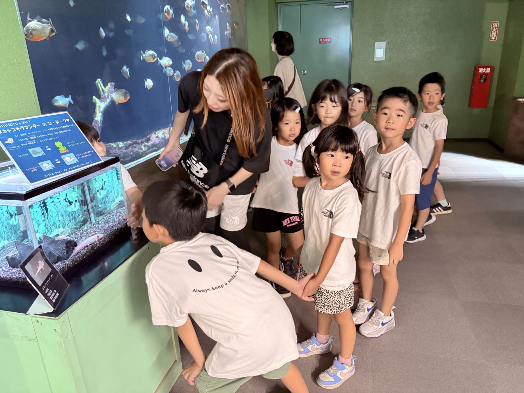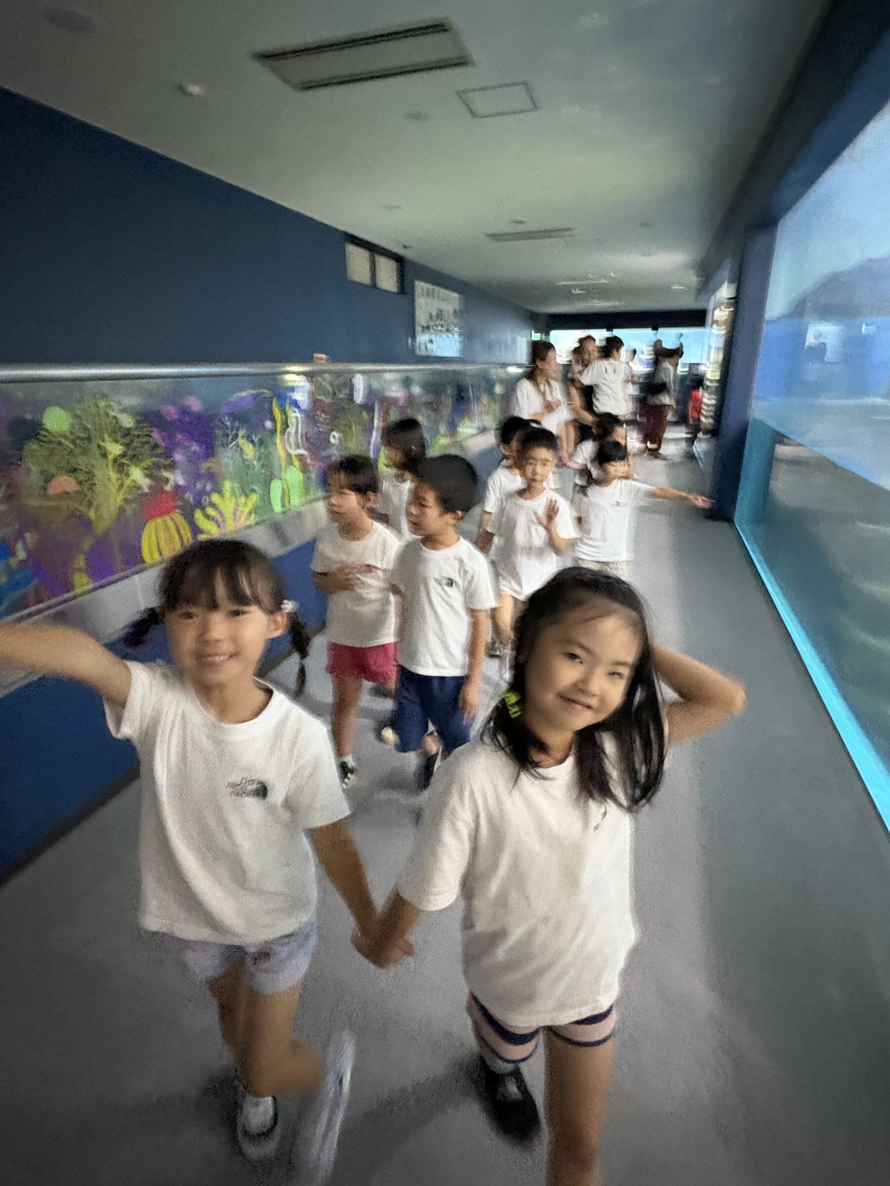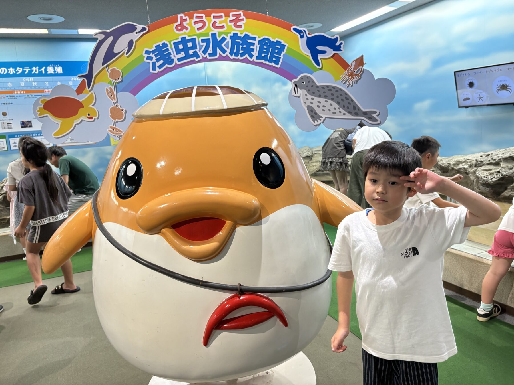 タッチコーナーでは、ヒトデやカニ、貝も触ってうれしそうでした♡