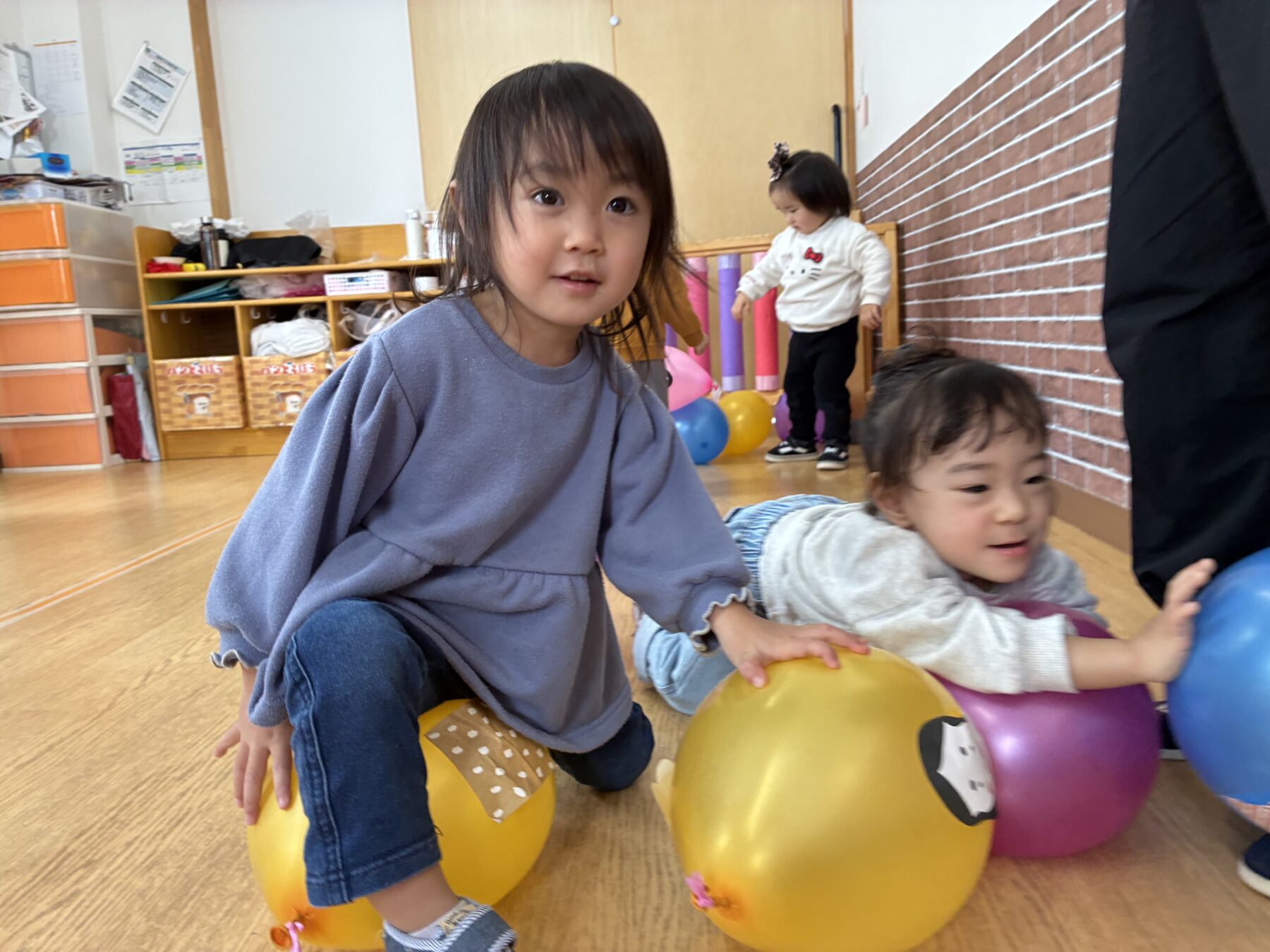好きな色を集めたり、器用に足でキックしてみたり、手を使って風船を弾ませて楽しみました😊!!