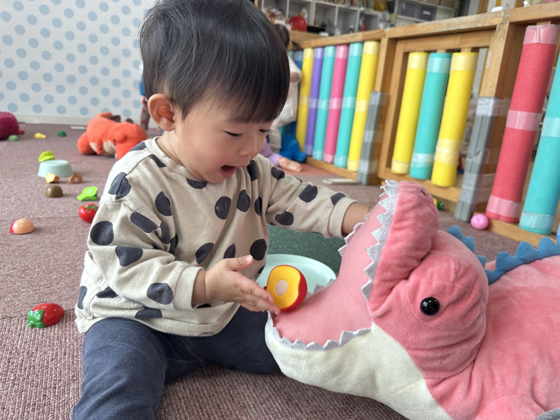 まねっこ遊びも上手になり、保育者の真似をしてお人形に食べ物を食べさせるふりを楽しむ子も😋