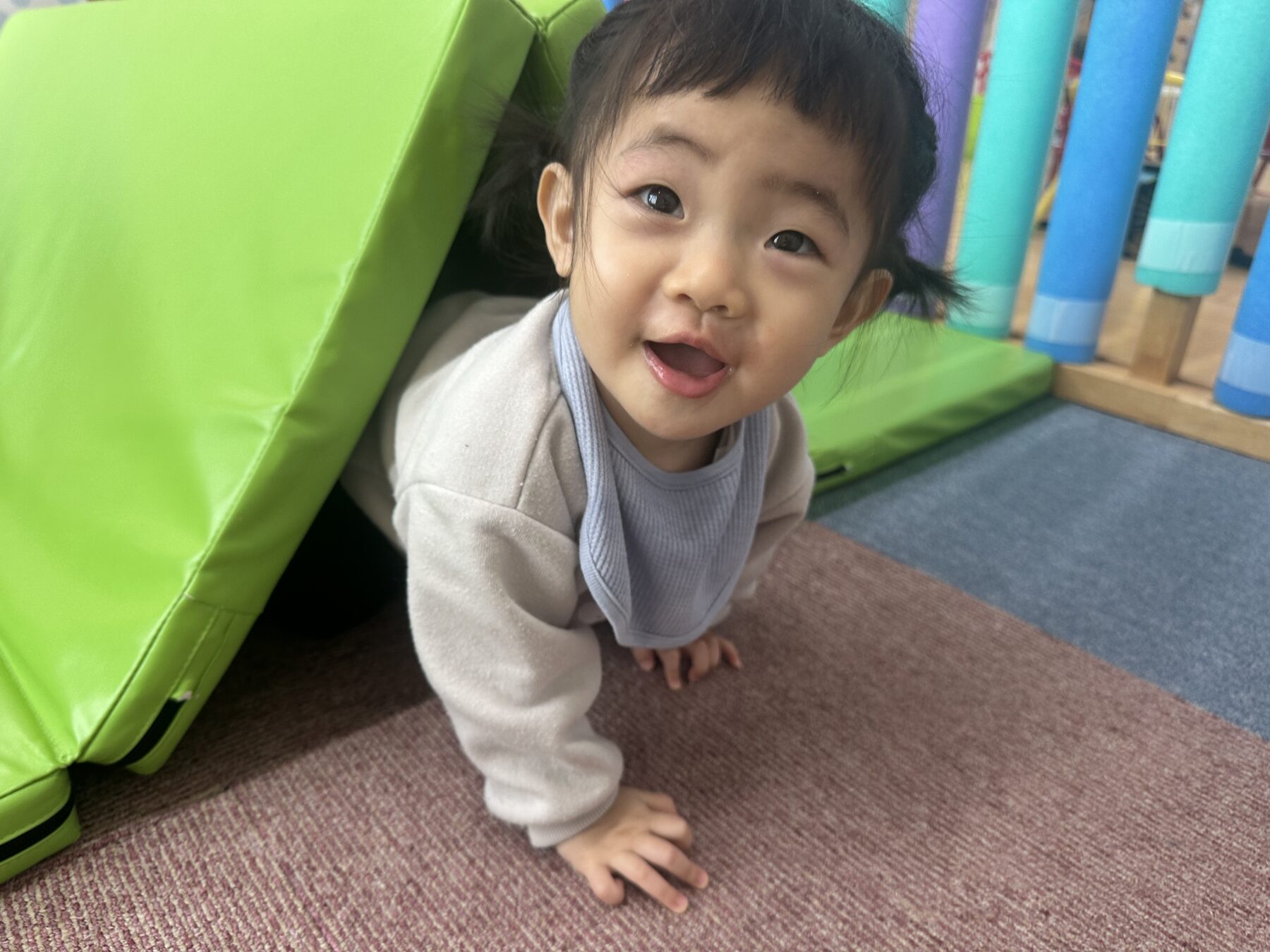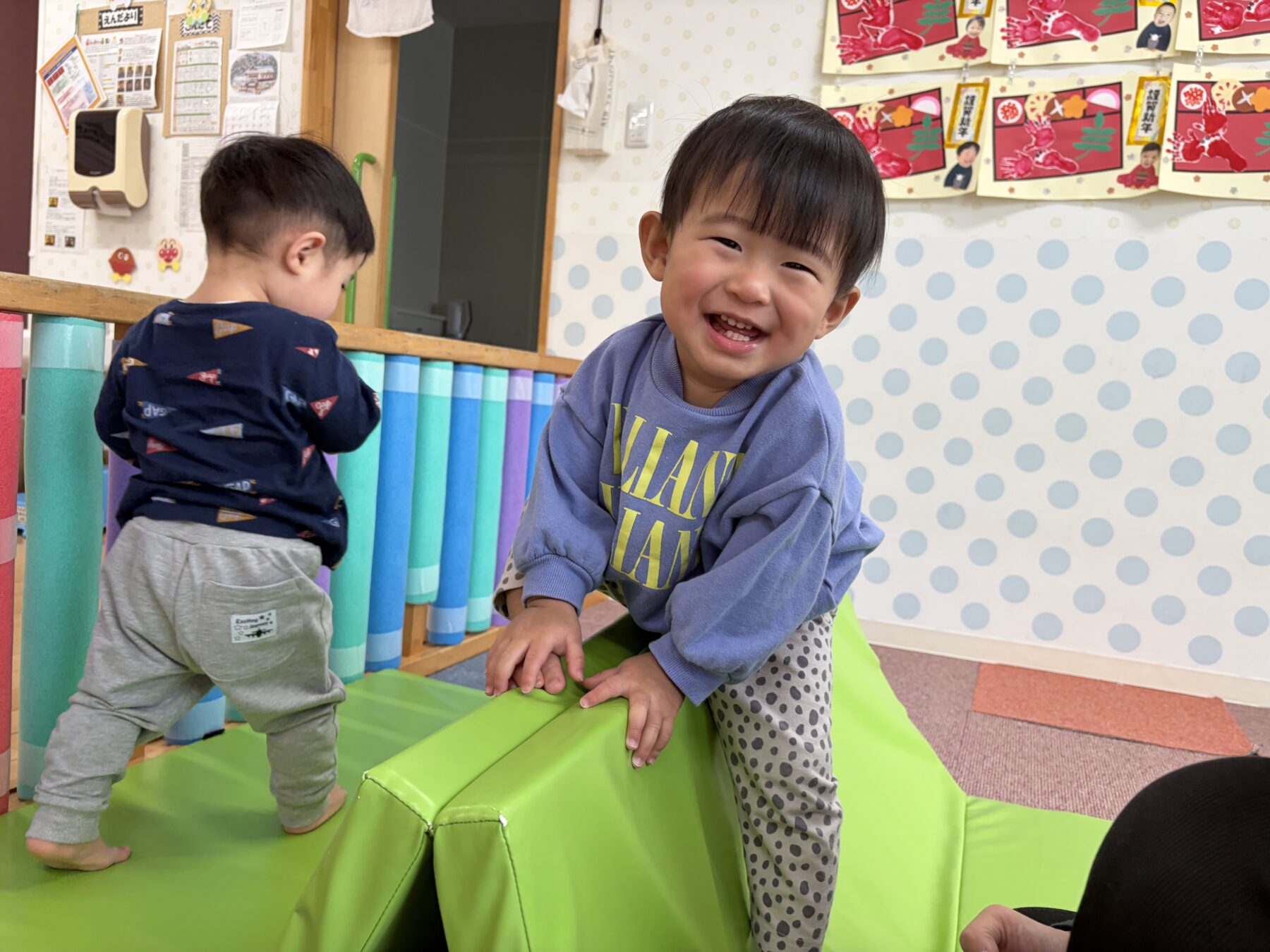 よちよち歩きだった子どもたちも、今では保育室を元気に走り回り、追いかけるのにも一苦労!汗をかきながらたくさん体を動かしています。もちろん、ハイハイやずりばいも速くなってきましたよ~👏