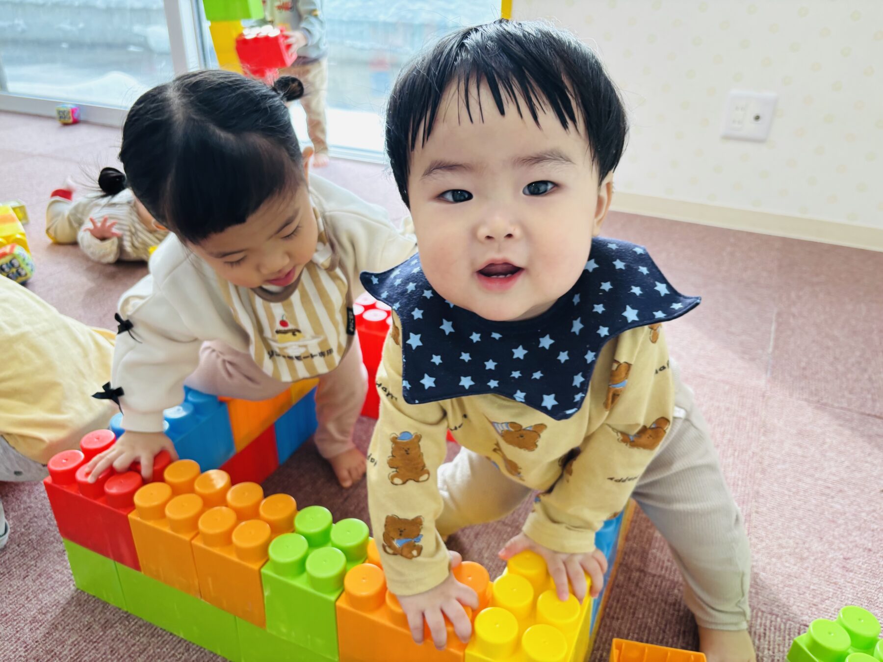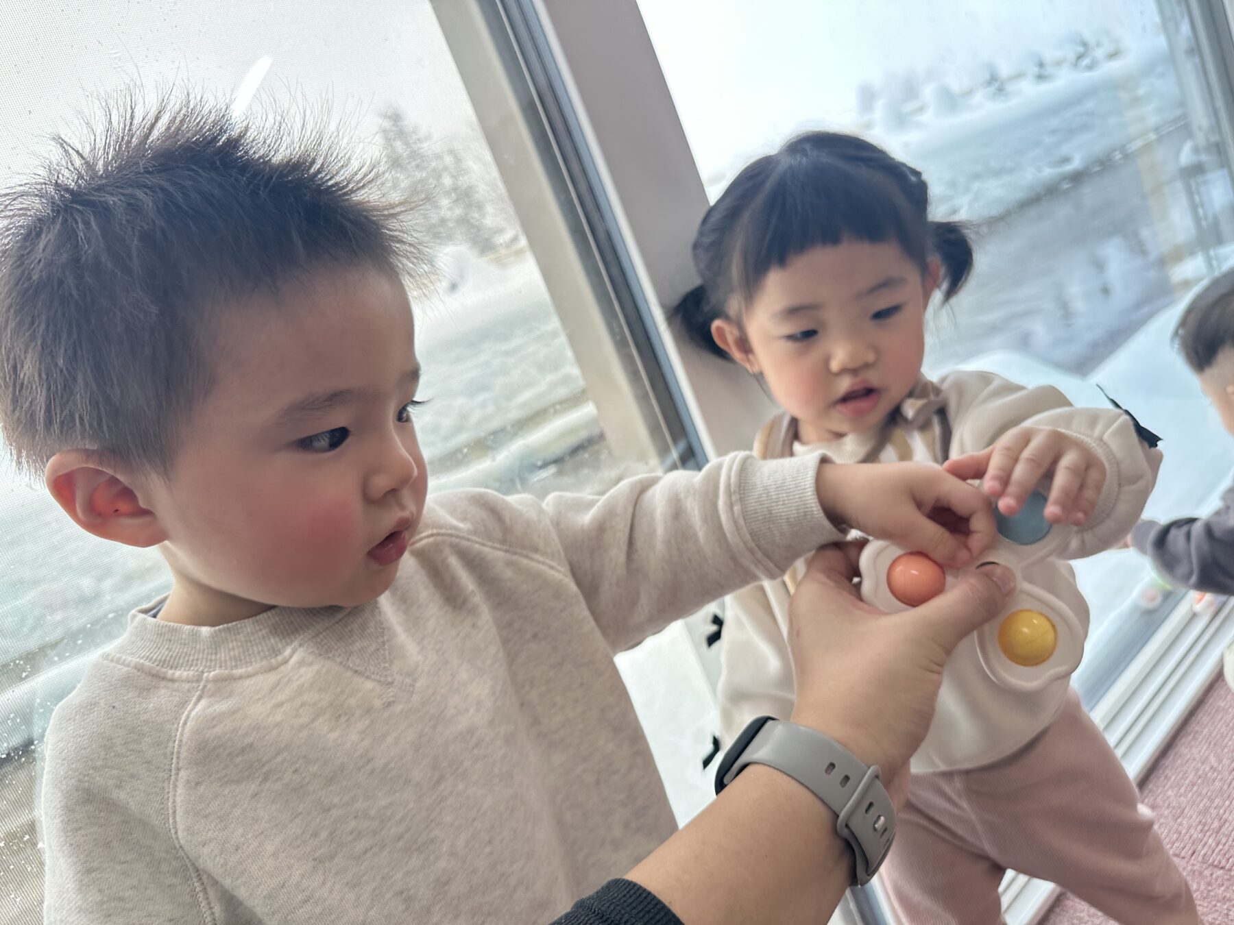 時々おもちゃの取り合いでけんかになることもありますが、それもまた、心身の成長がゆえのこと。優しく見守りながら、「貸して」のハンドサインを知らせています🙌