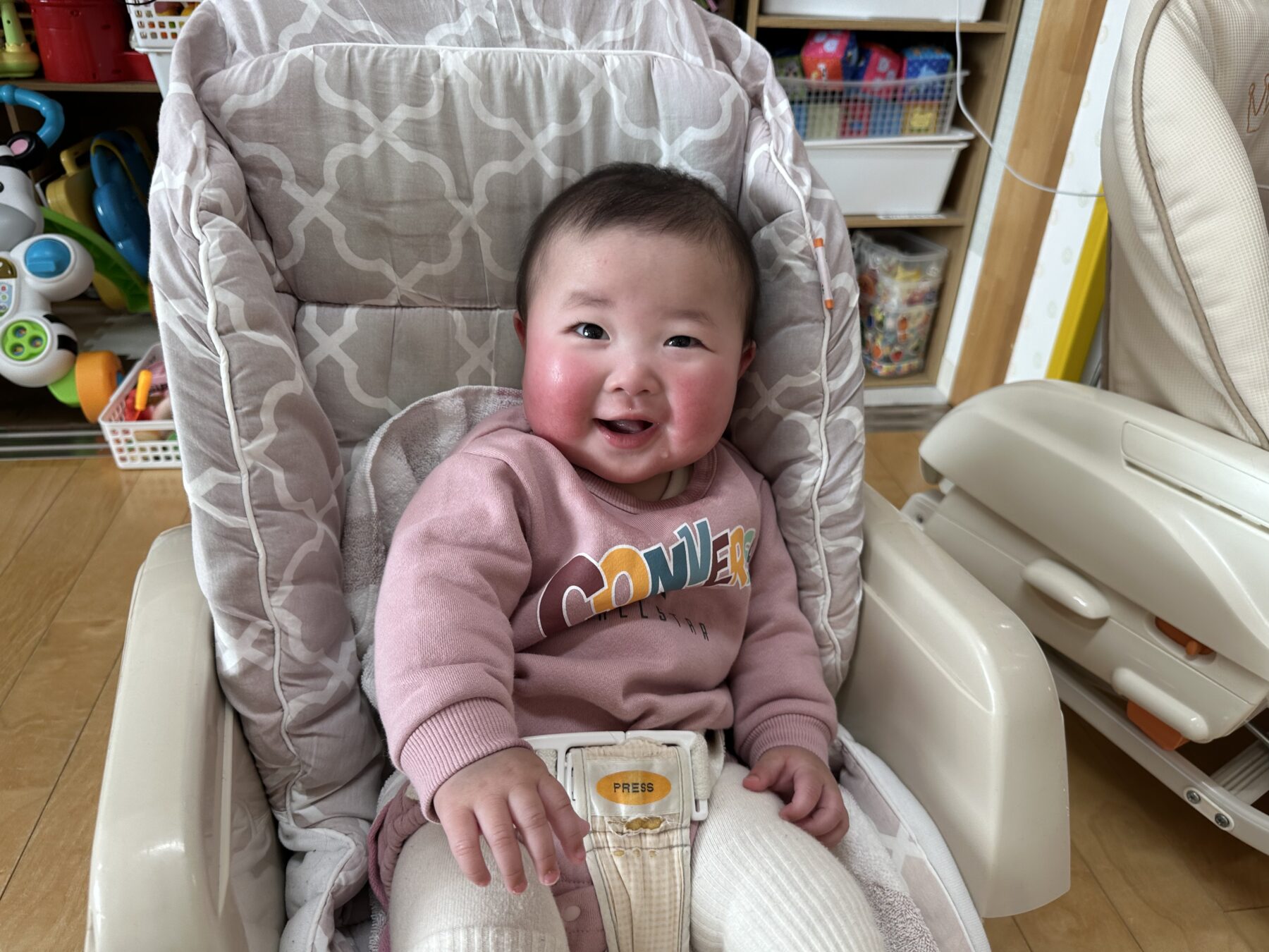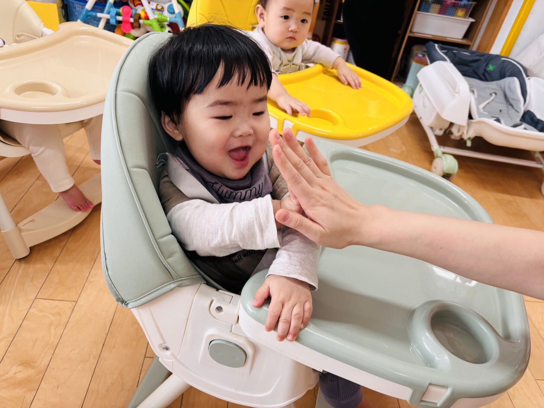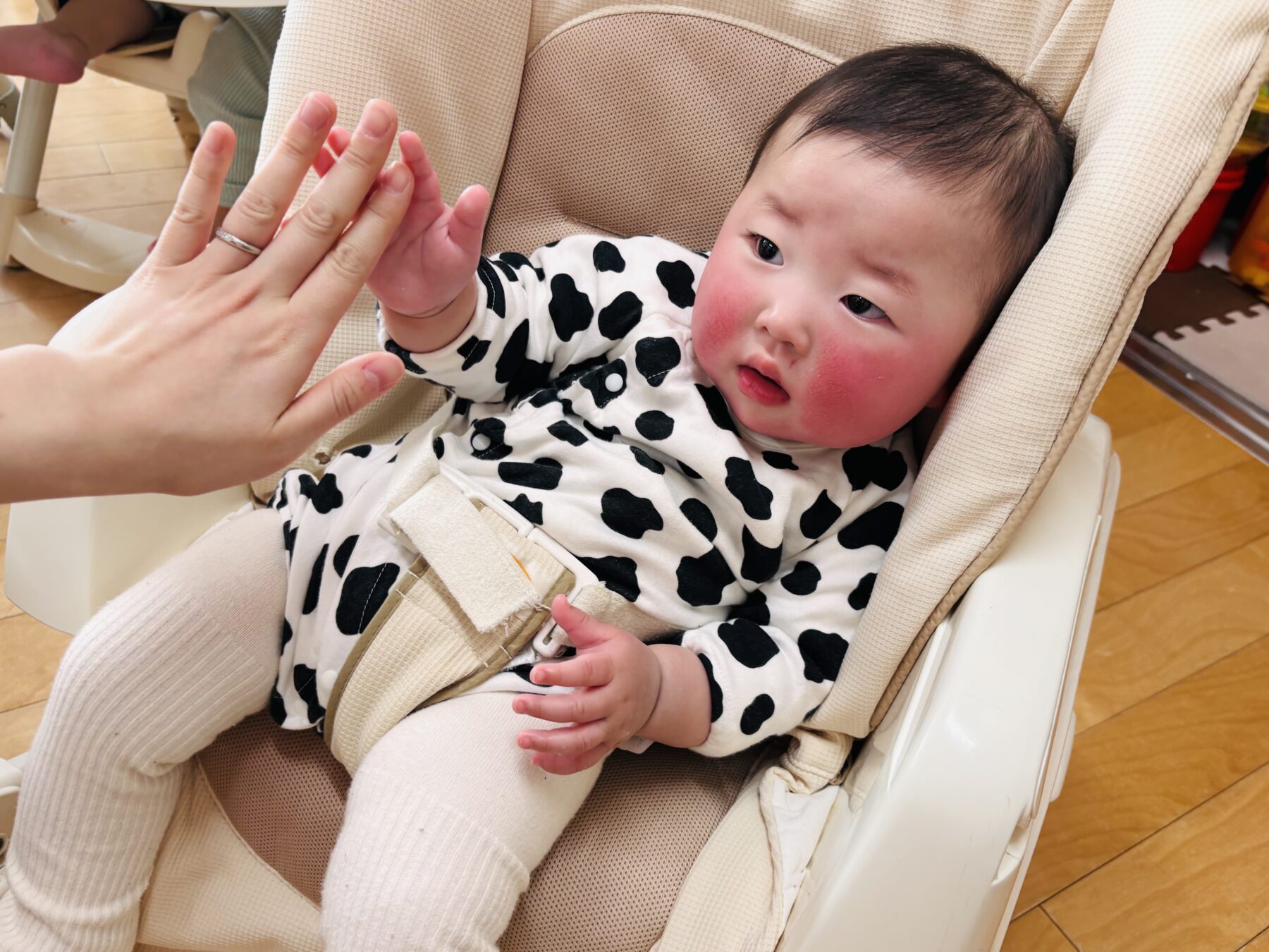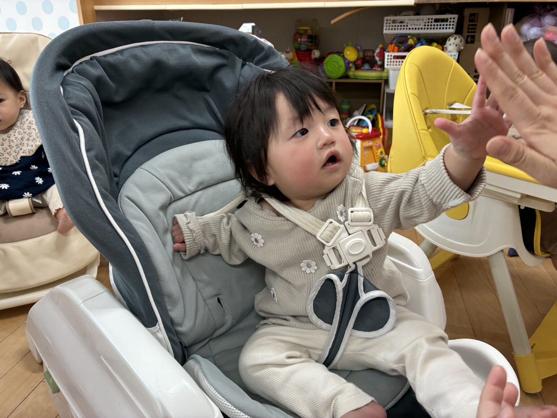 保育者の声に反応し、「はーい」と可愛らしく手を伸ばす姿に成長を感じますね🥰