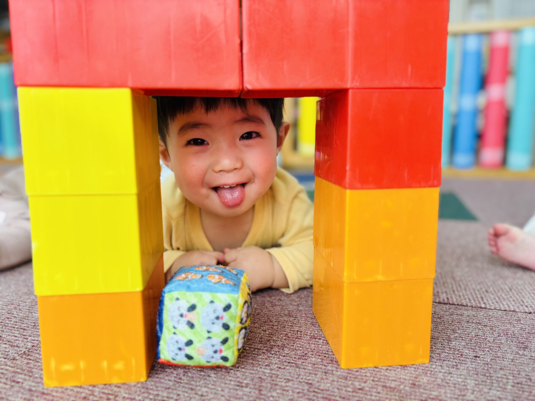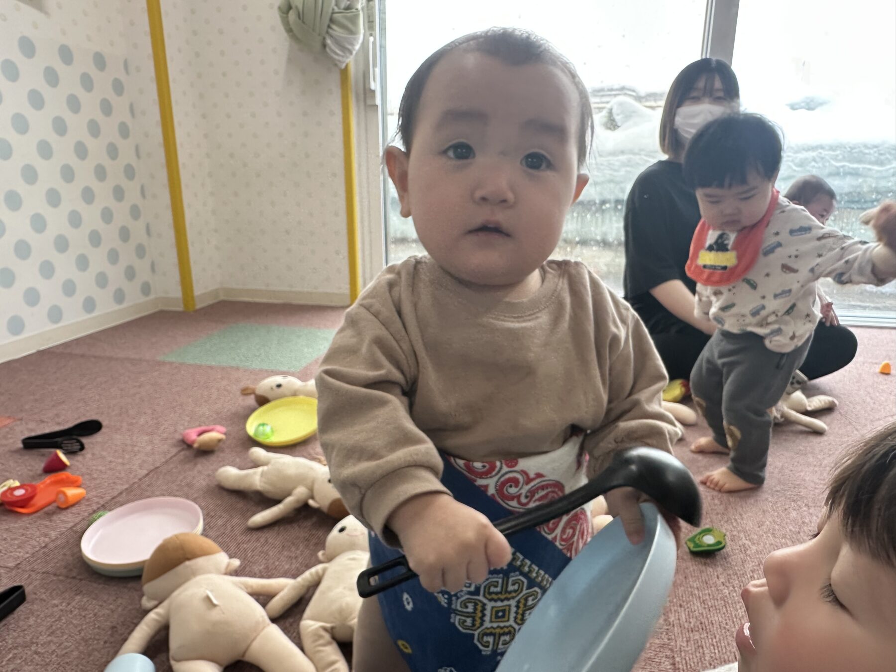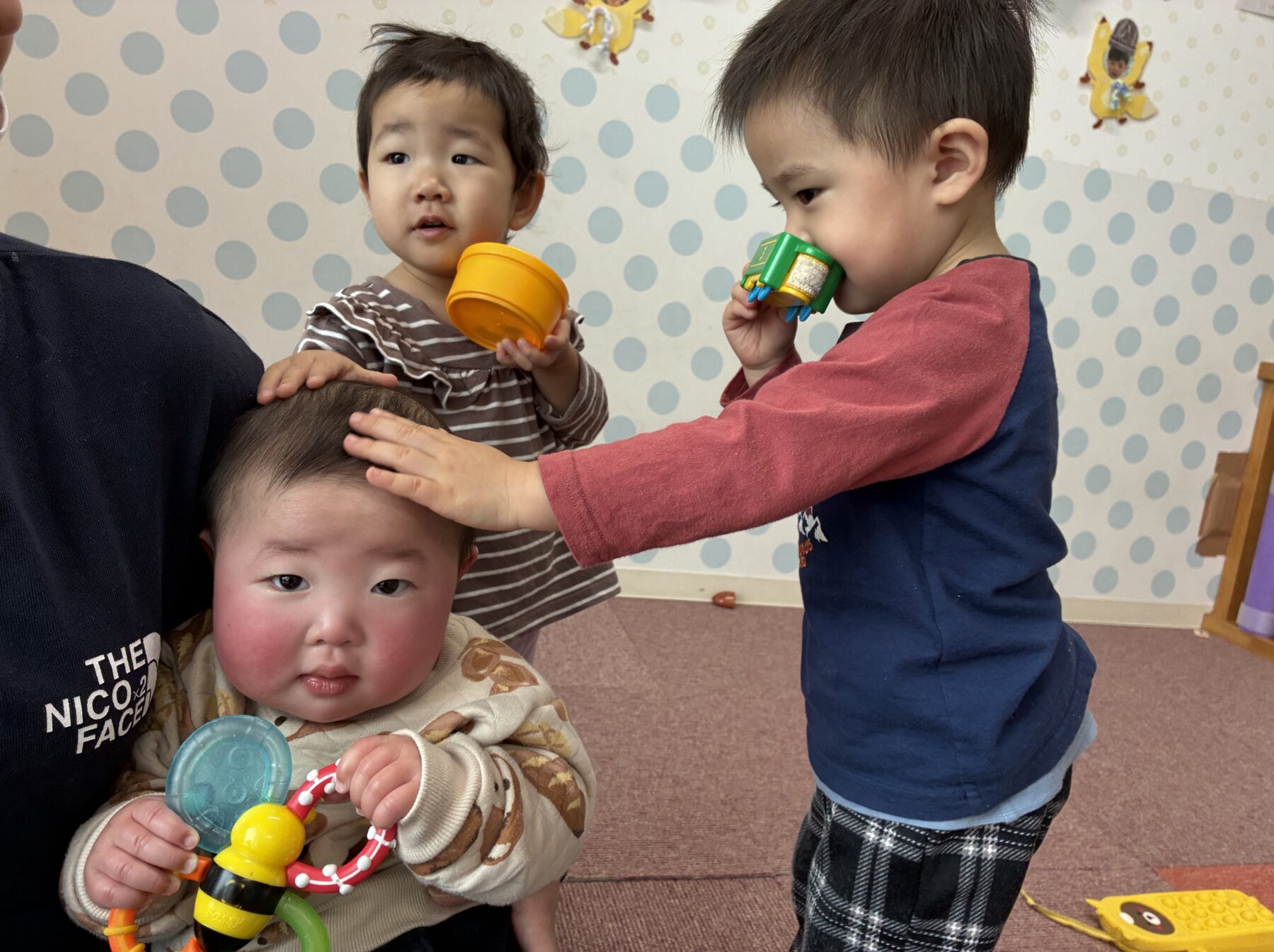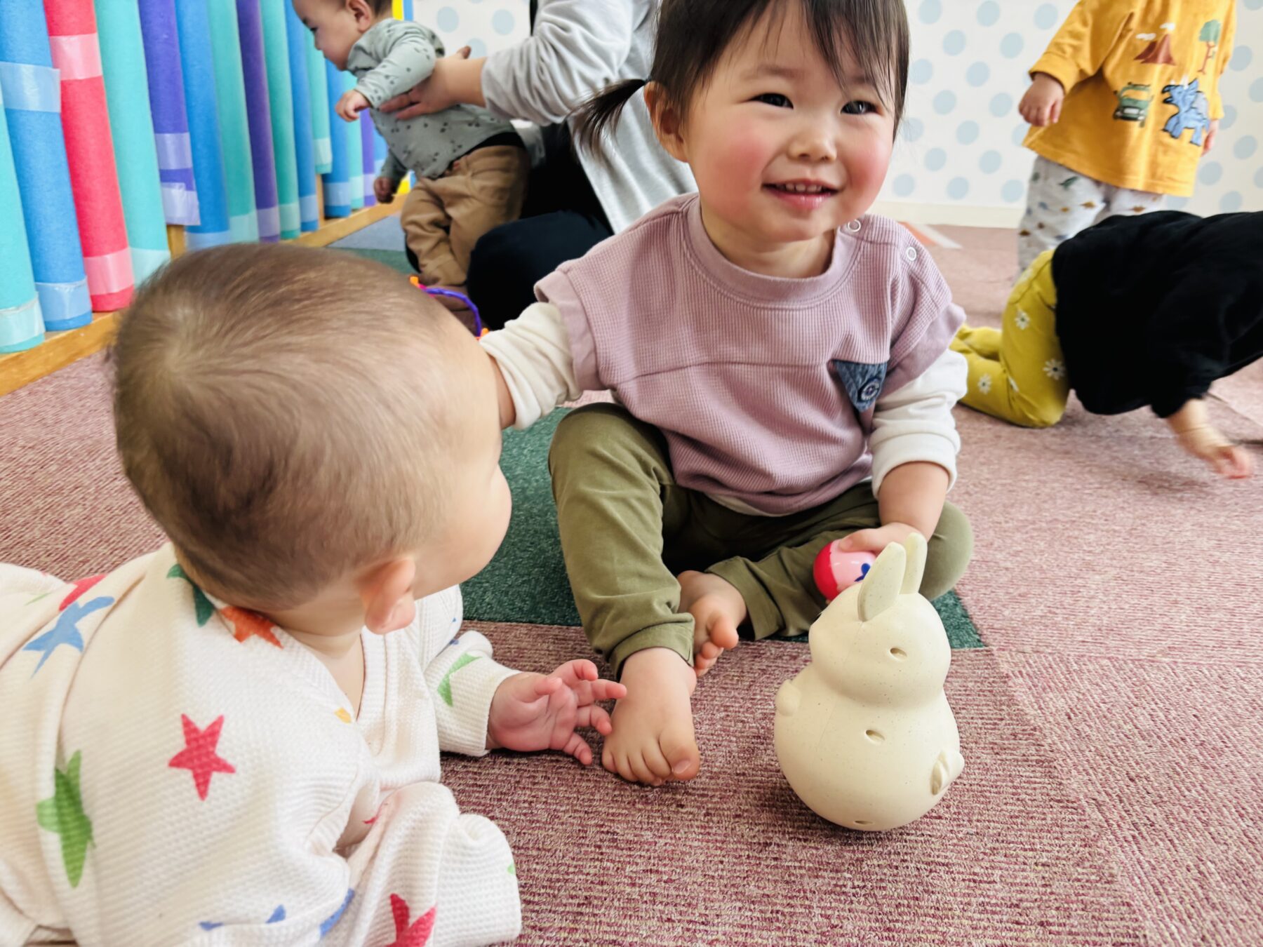 月齢の高い子どもたちは、自分より小さいお友達に興味津々の様子🌼