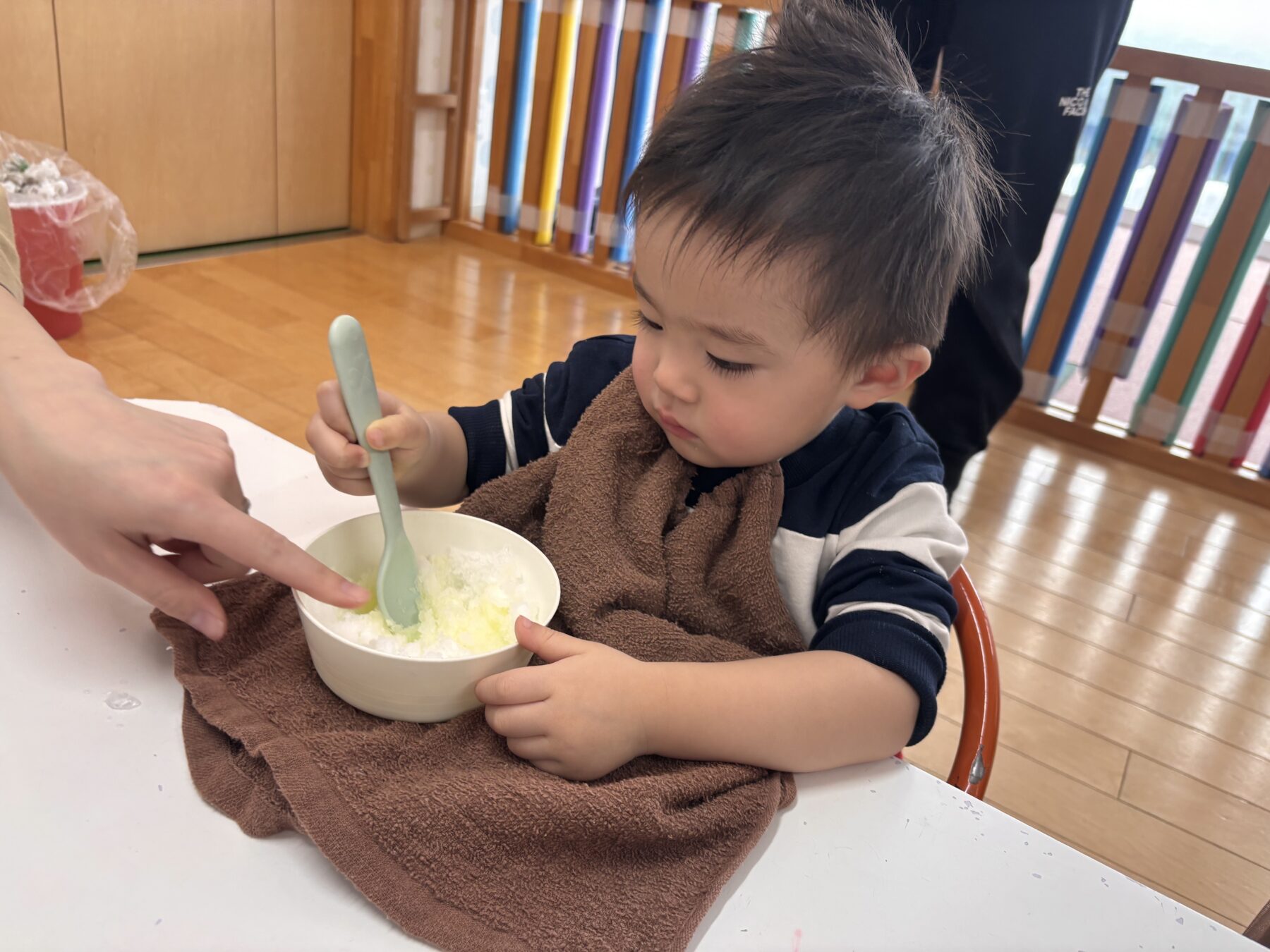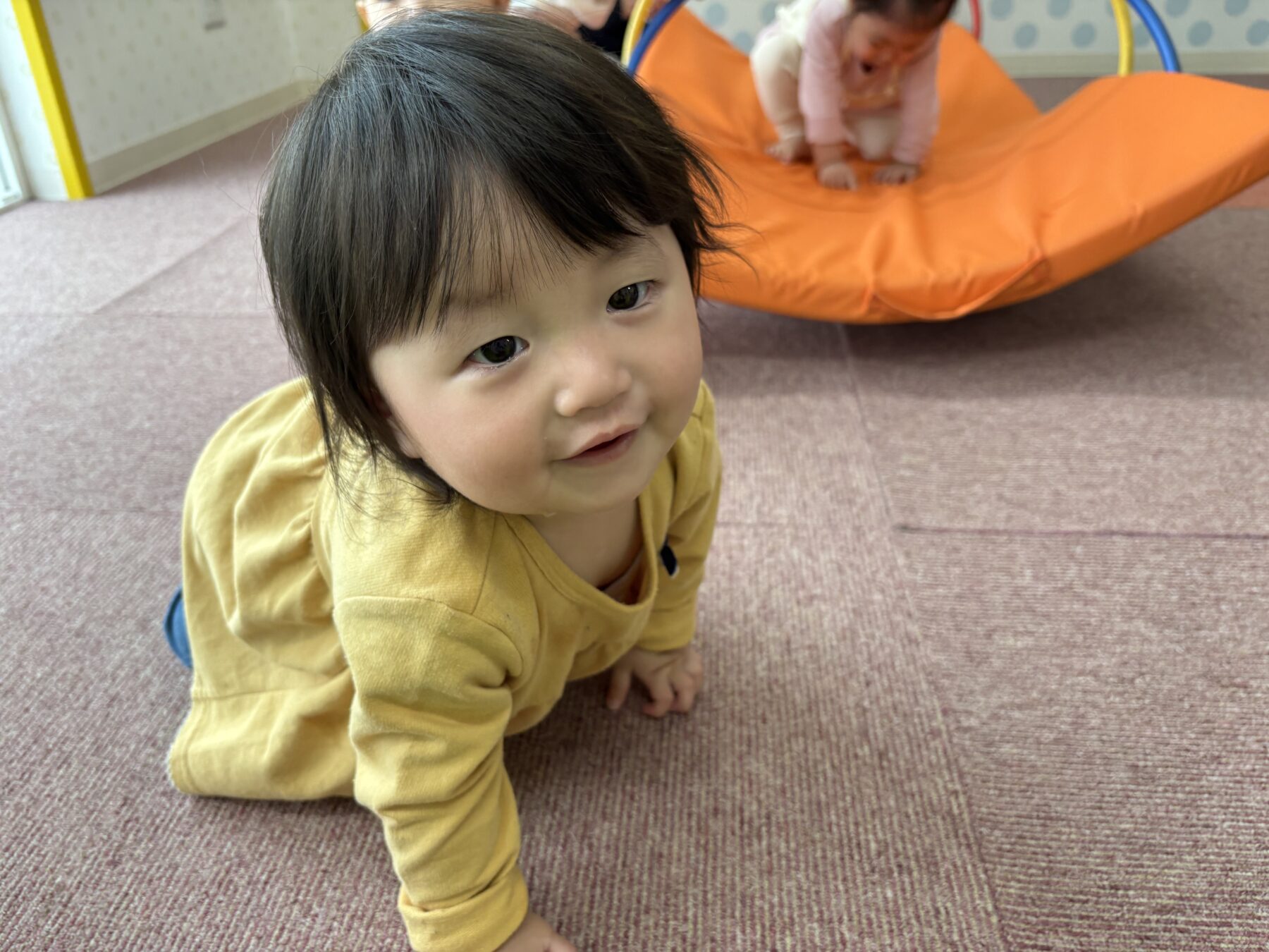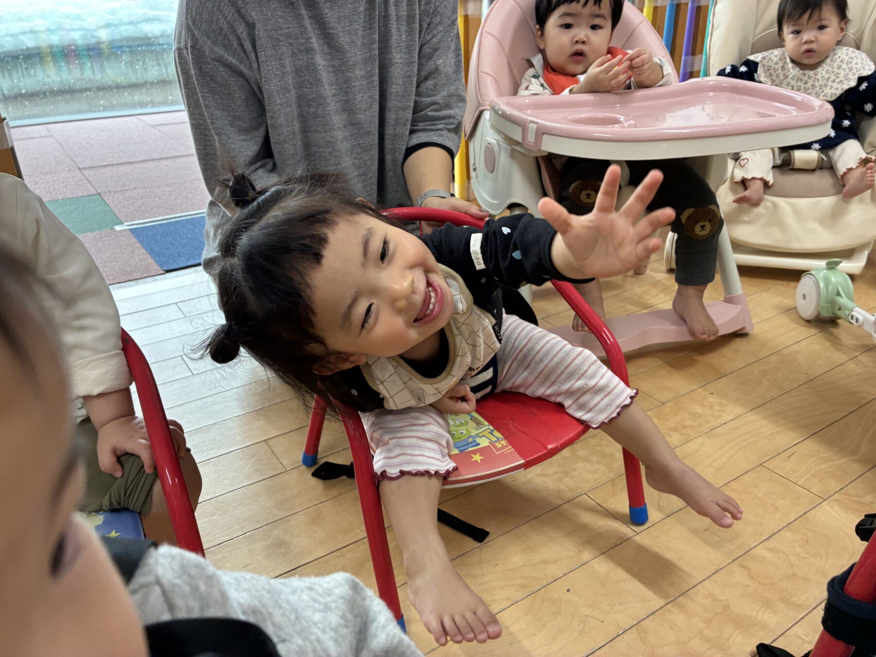 月齢の低い子どもたちは、朝の会で名前を呼ばれると手を挙げる姿が見られるようになってきました🧡