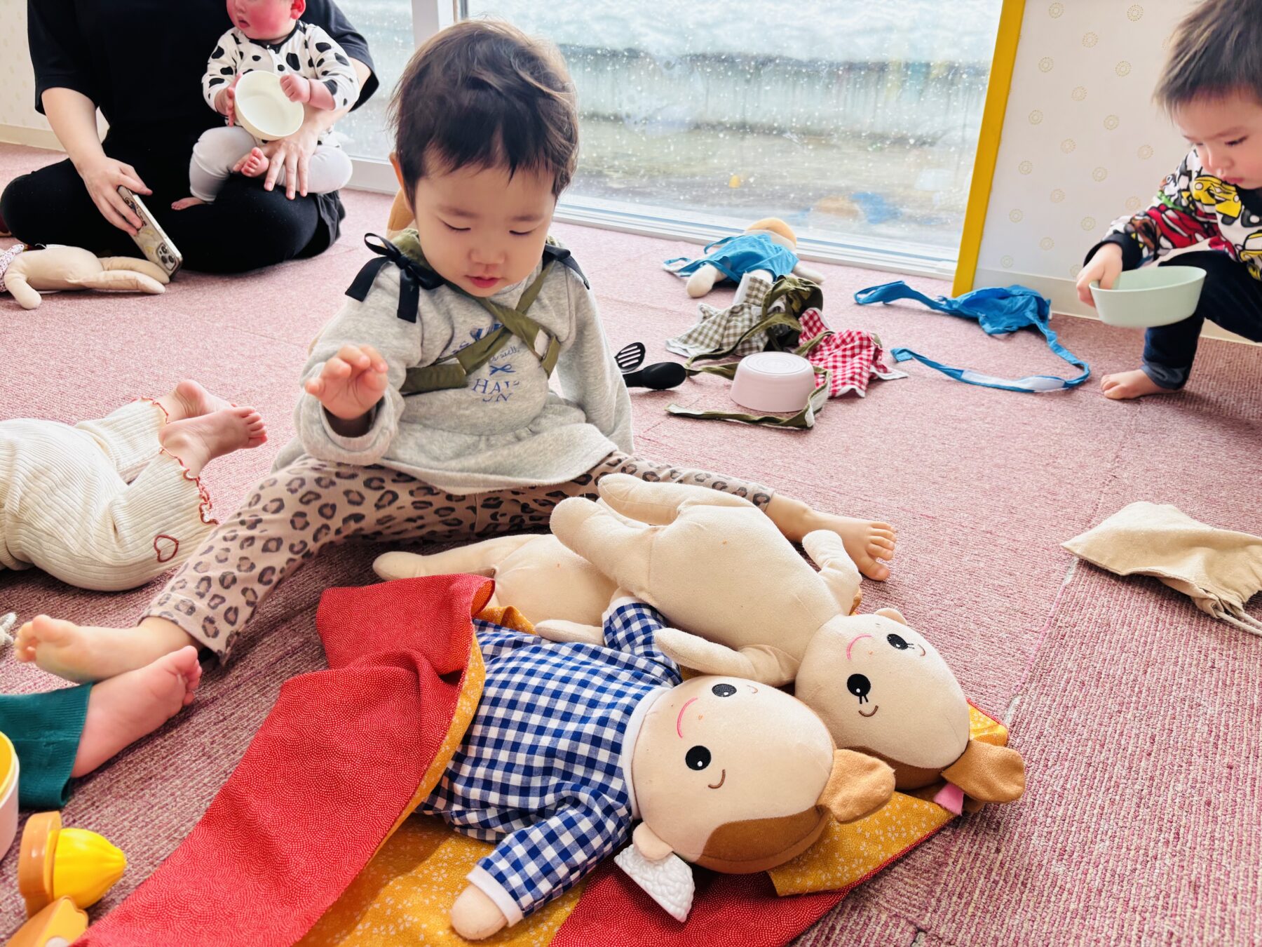 おままごと遊びではお人形に優しく“トントン”として寝かせてあげようとしたり、抱っこしたりする姿が増えてきました✨