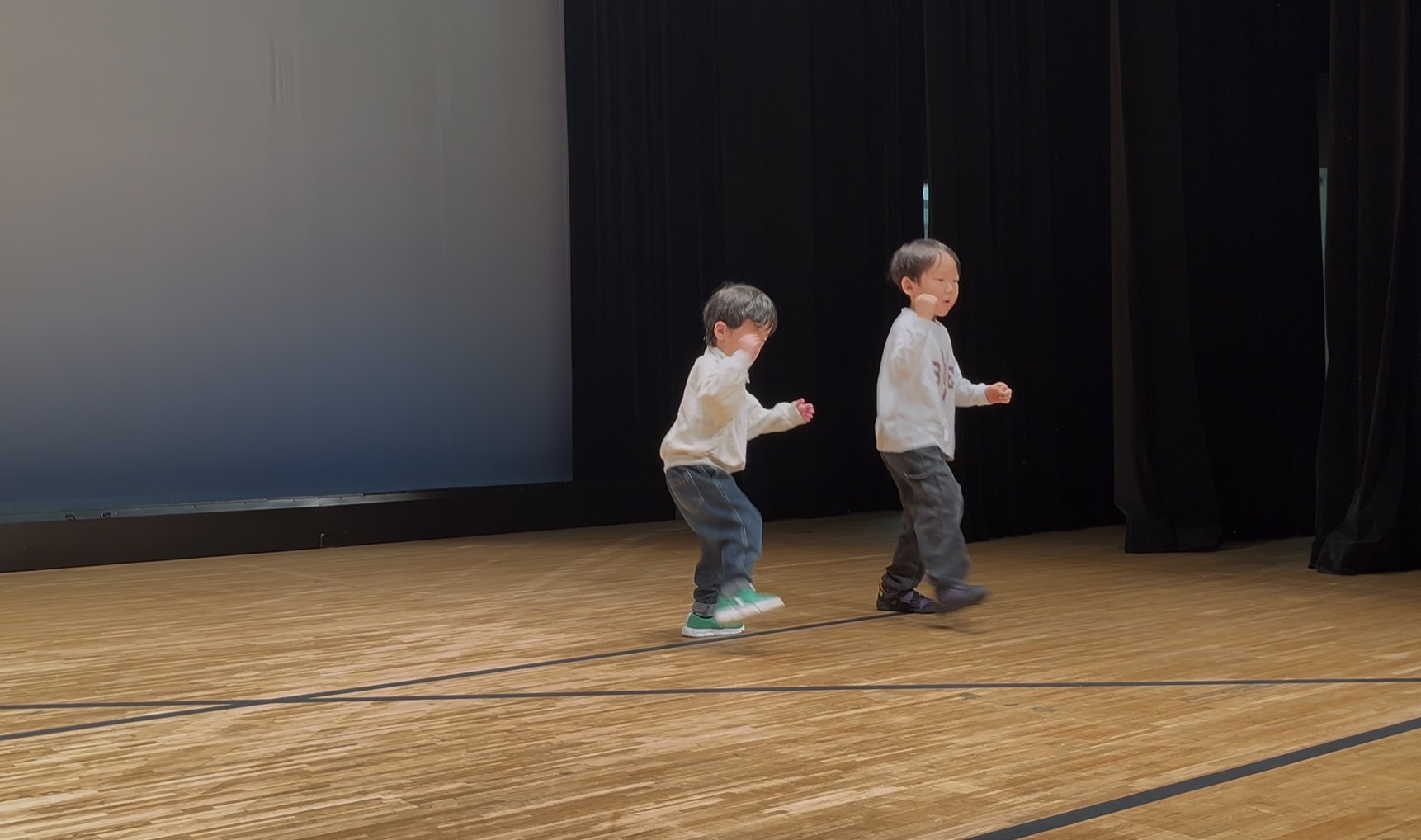 立派なステージに少し緊張した様子も見られましたが、立ち位置を確認したり、音楽に合わせて動きを確かめたりしながら、真剣に取り組んでいました😊