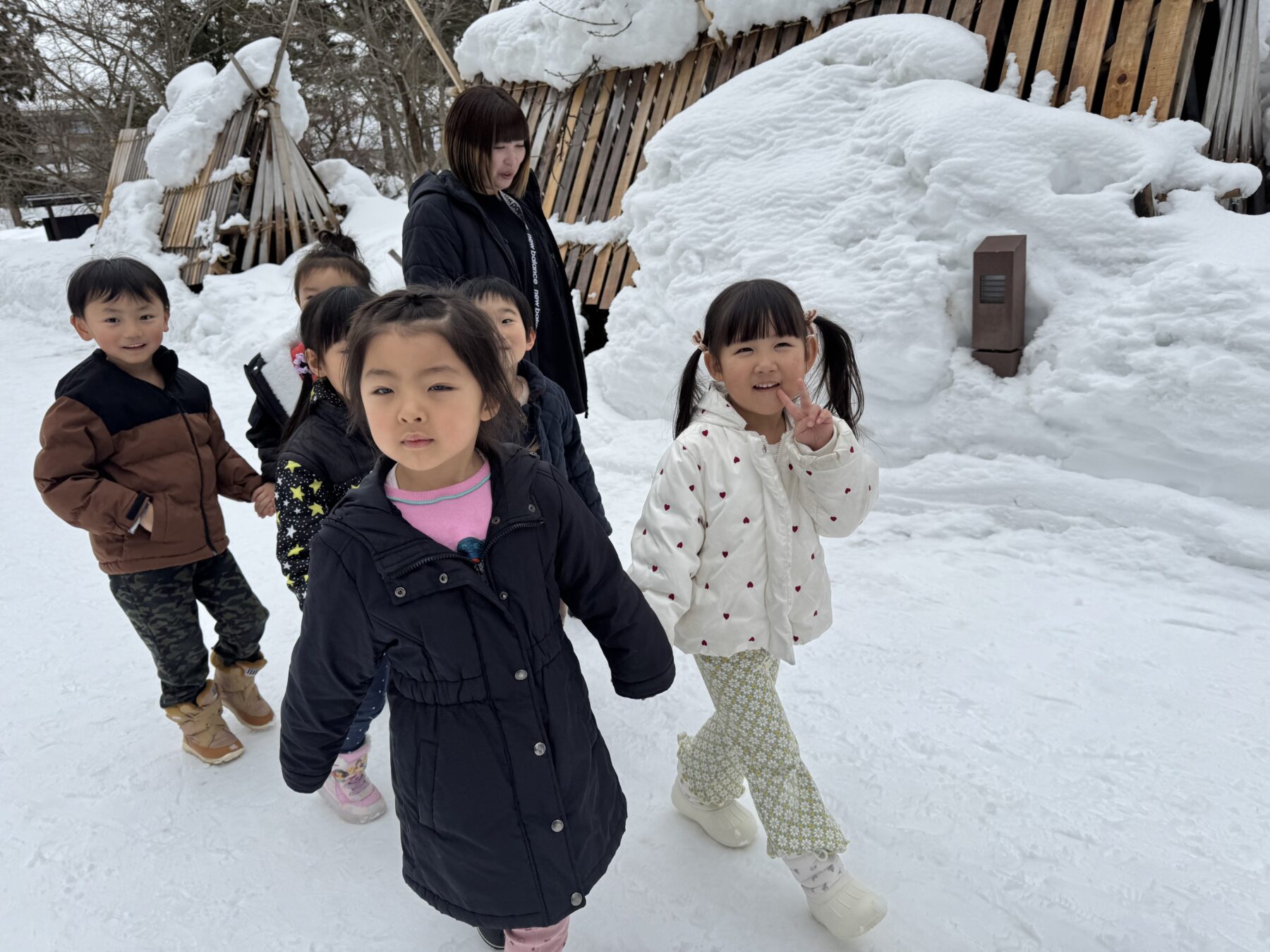 冷たい雪に触れながらも、笑顔いっぱいで遊ぶ子どもたちの姿がとても印象的でした✨