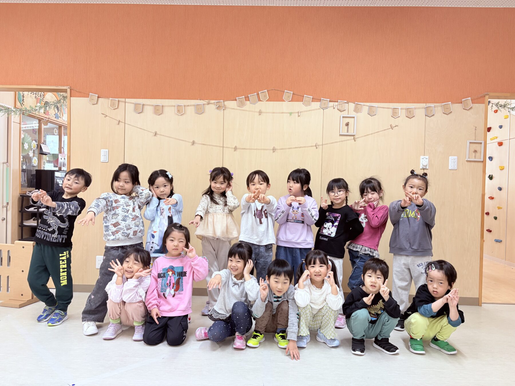 音楽に合わせて体を動かしたり、友だちと動きをそろえたりしながら、繰り返し練習を重ねる中で、少しずつ自信を持って踊れるようになっていきました🕺✨