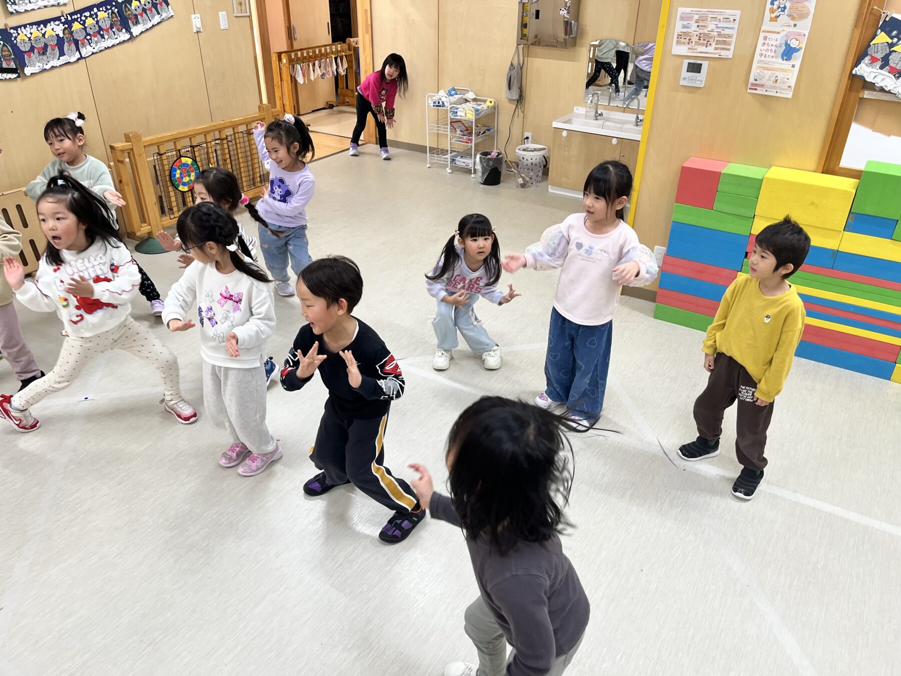 音楽に合わせて体を動かしたり、友だちと動きをそろえたりしながら、繰り返し練習を重ねる中で、少しずつ自信を持って踊れるようになっていきました🕺✨